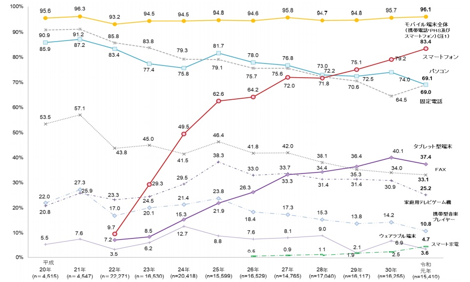 特に平成22年以降、スマートホンの急激な普及が見られるようになりました。